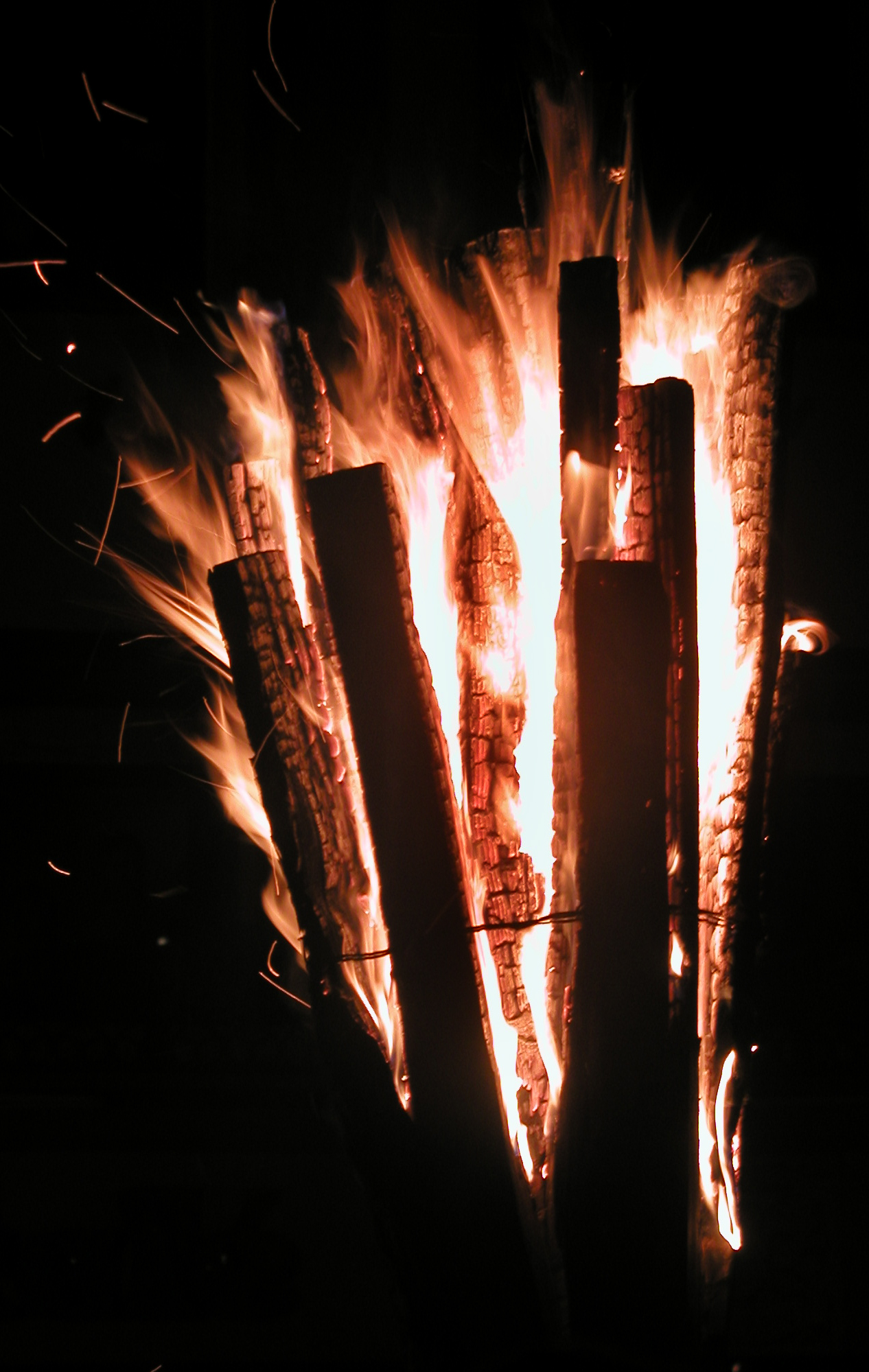 Faszination des offenen Feuers - magische Anziehungskraft der prasselnden Flammen. Unberechenbar, zähmbar nur im Kleinen. Zu grosser Abstand bedeutet Erfrieren - zu grosse Nähe ist Verderben. Ob Sonne oder wärmende Glut der Baumstämme - nur die respektvolle Distanz erhält das Leben.
